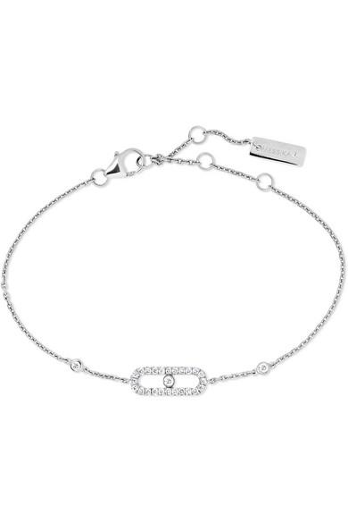 Fully handcrafted in 18 carat white gold messika move uno bracelet is a part of the signature messika collection the move collection.